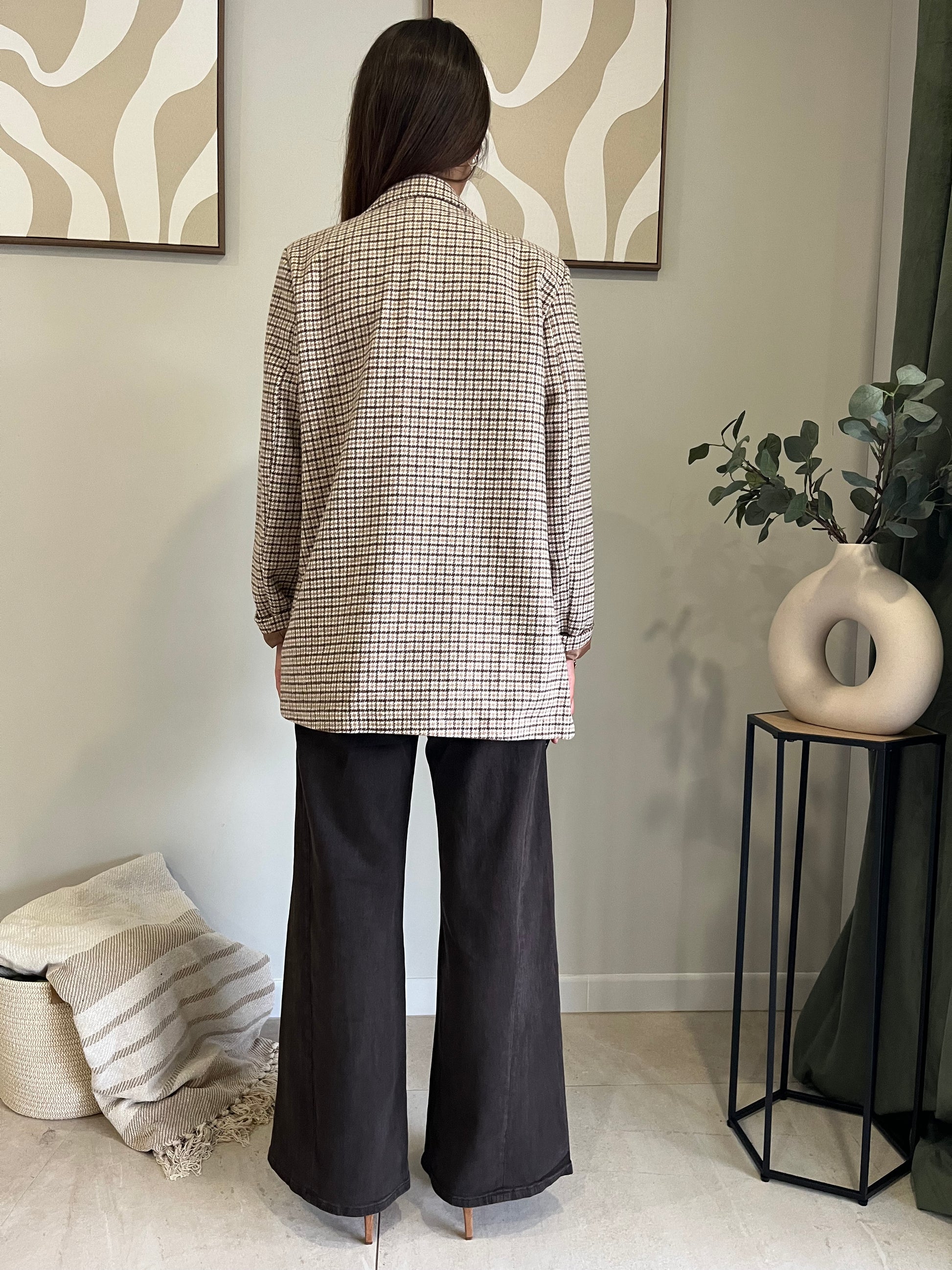 Son motif à carreaux marron, à la fois chaud et sophistiqué, lui donne un charme intemporel.