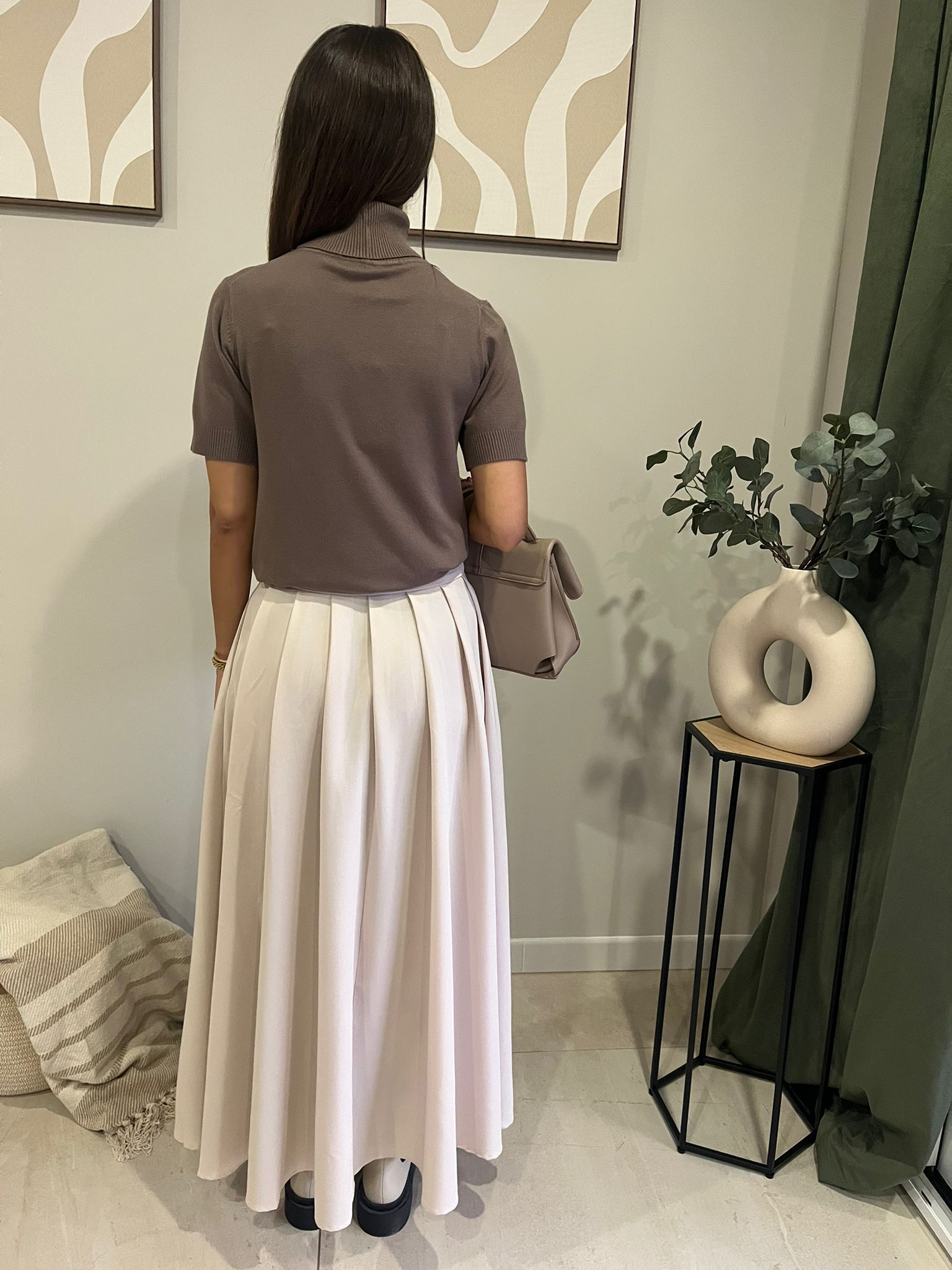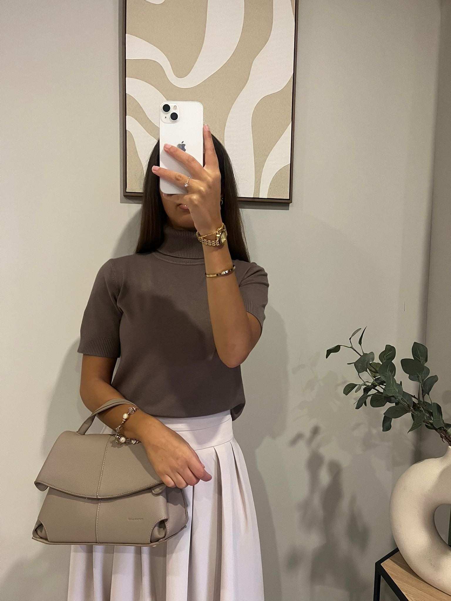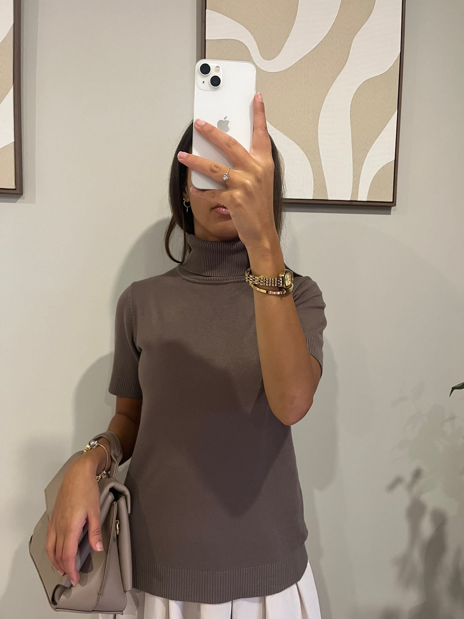 Pull manches courtes col roulé marron