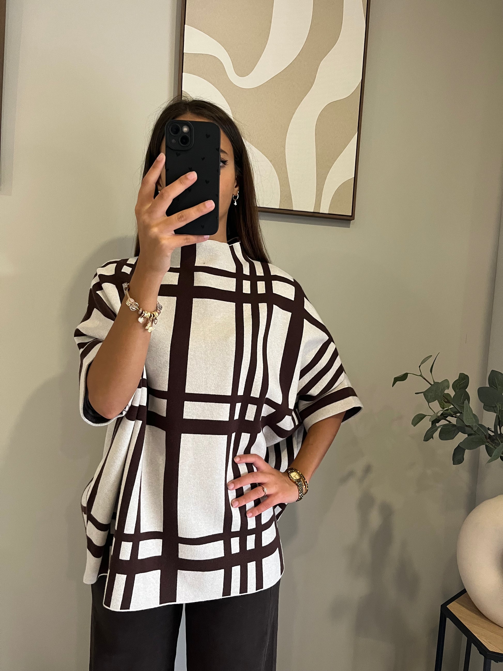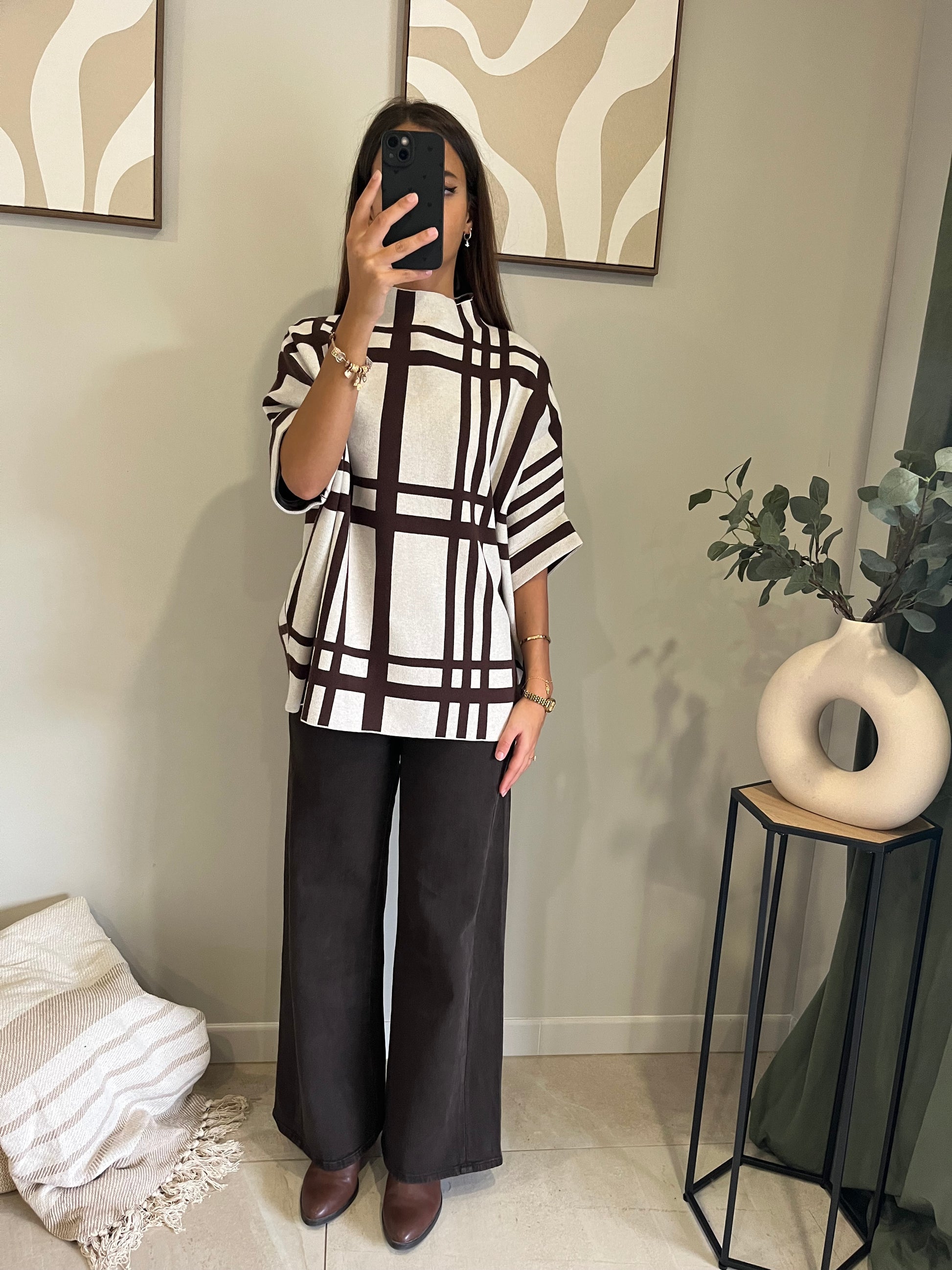 Son motif géométrique raffiné et sa coupe droite subtilement ample lui confèrent une allure à la fois moderne et sophistiquée.